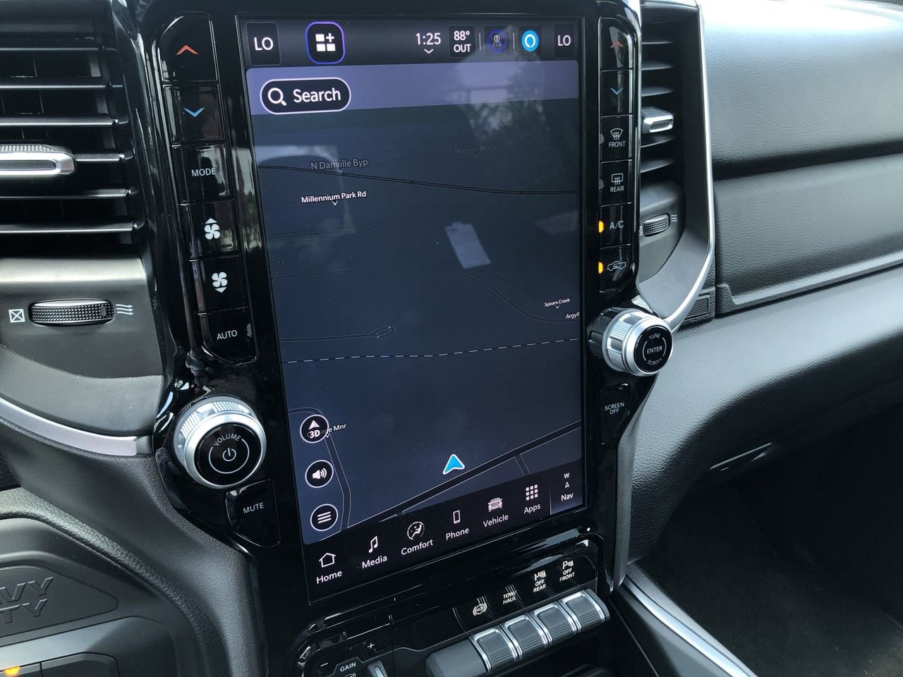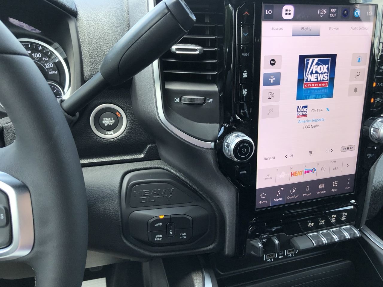 BIG HORN LEVEL 1 PLUS EQUIPMENT GROUP -inc: Emergency Vehicle Alert System (EVAS) Glove Box Lamp 12 Touchscreen Display Auto Power-Folding Mirrors Footwell Courtesy Lamp Anti-Spin Differential Rear Axle MOPAR Deployable Bed Step Alexa Built-In Forward & Reverse Utility Lights Locking Lower Glove Box Remote Start System 9 Alpine Speakers w/Subwoofer Dual Glove Boxes 2nd Row In Floor Storage Bins Rear View Auto Dim Mirror Rear Dome w/On/Off Switch Lamp LED Bed Lighting GPS Navigation SiriusXM w/360L Connected Travel & Traffic Services Foam Bottle Insert (Door Trim Panel) Big Horn IP Badge Off-Road Info Pages Trailer Tow Pages HD Radio Radio: Uconnect 5 Nav w/12.0 Display Power Heated Folding Telescopic Mirrors Steering Wheel Mounted Audio Controls Air Conditioning ATC w/Dual Zone Control MOPAR Spray In Bedliner Luxury Steering Wheel Power Telescoping Mirrors