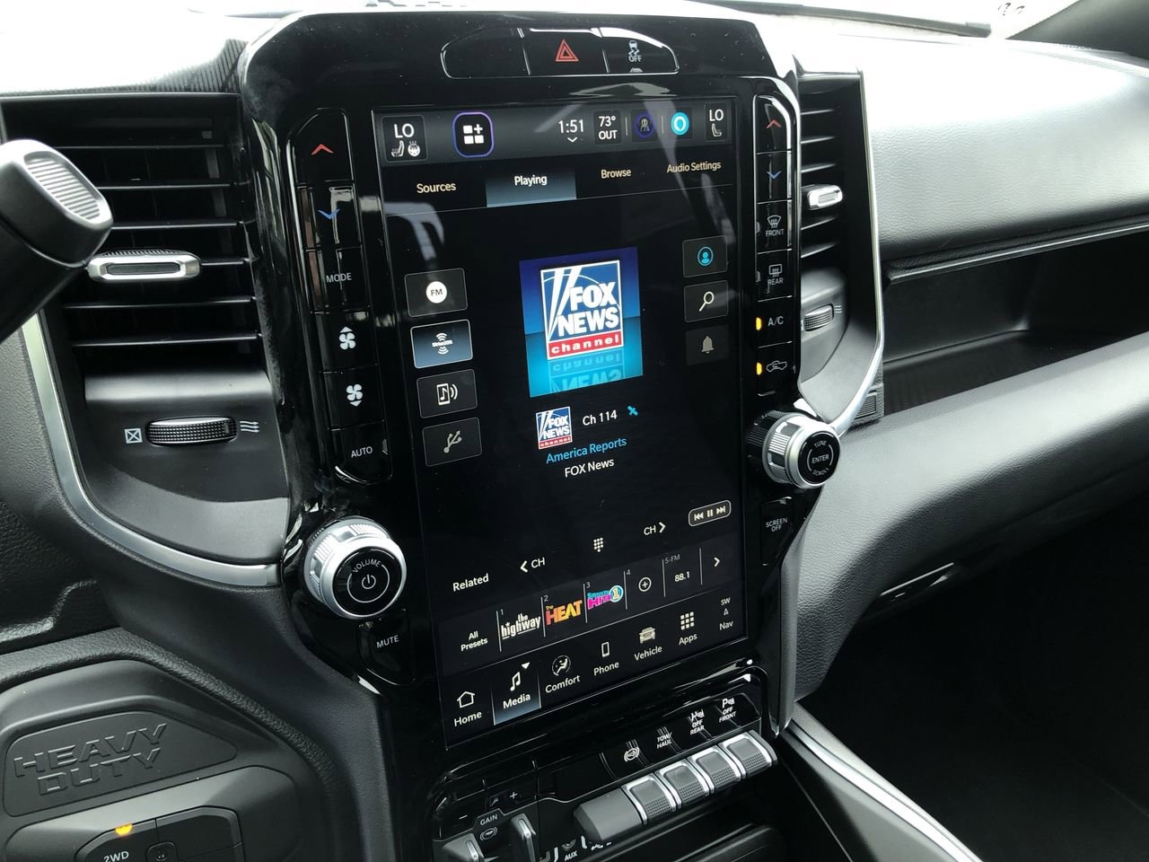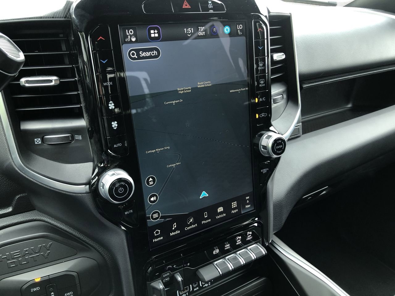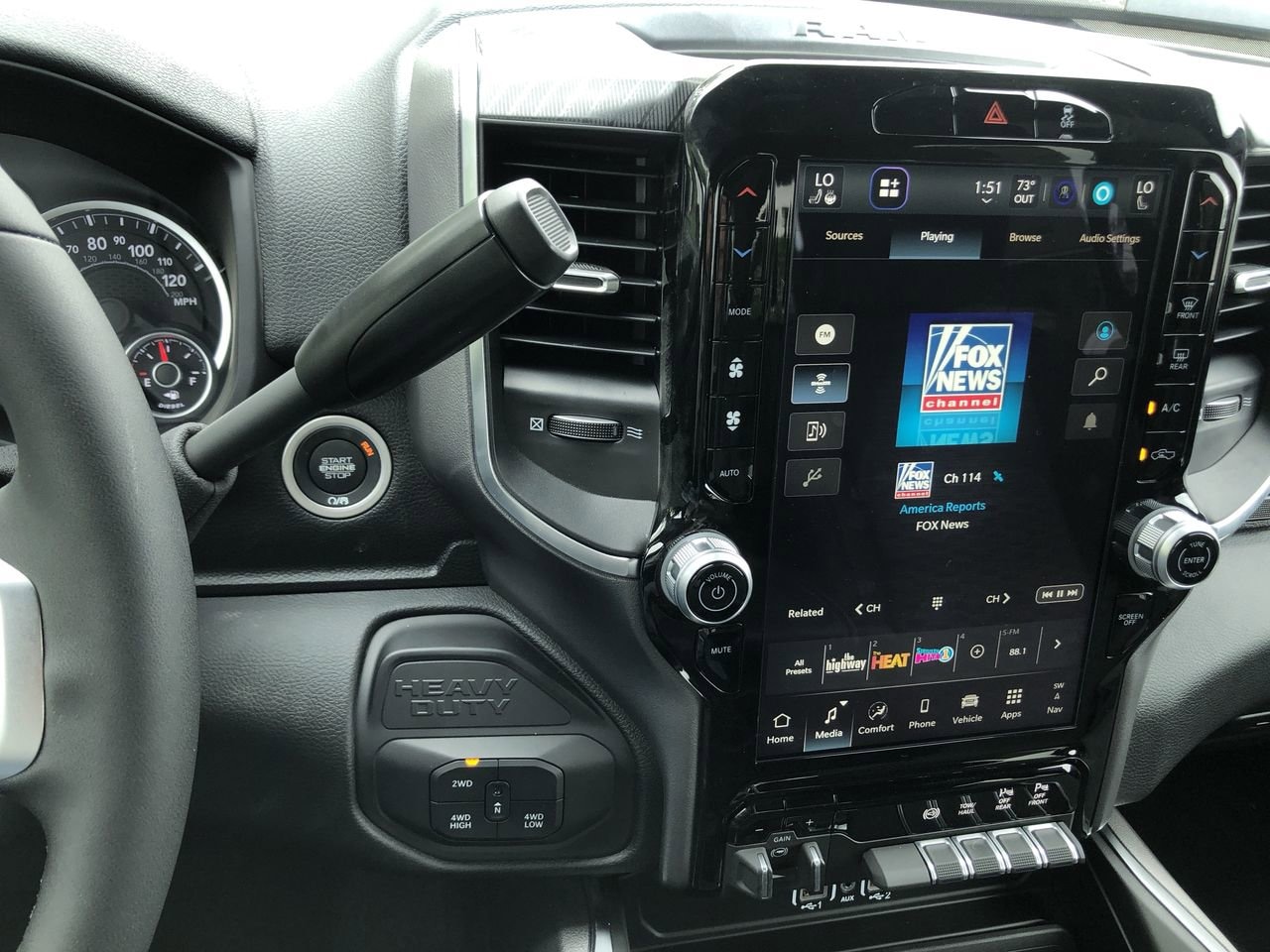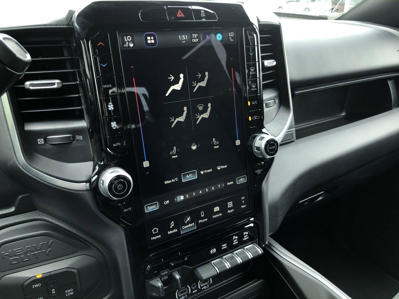 BIG HORN LEVEL 1 PLUS EQUIPMENT GROUP -inc: Emergency Vehicle Alert System (EVAS) Glove Box Lamp 12 Touchscreen Display Auto Power-Folding Mirrors Footwell Courtesy Lamp Anti-Spin Differential Rear Axle MOPAR Deployable Bed Step Alexa Built-In Forward & Reverse Utility Lights Locking Lower Glove Box Remote Start System 9 Alpine Speakers w/Subwoofer Dual Glove Boxes 2nd Row In Floor Storage Bins Rear View Auto Dim Mirror Rear Dome w/On/Off Switch Lamp LED Bed Lighting GPS Navigation SiriusXM w/360L Connected Travel & Traffic Services Foam Bottle Insert (Door Trim Panel) Big Horn IP Badge Off-Road Info Pages Trailer Tow Pages HD Radio Radio: Uconnect 5 Nav w/12.0 Display Power Heated Folding Telescopic Mirrors Steering Wheel Mounted Audio Controls Air Conditioning ATC w/Dual Zone Control MOPAR Spray In Bedliner Luxury Steering Wheel Power Telescoping Mirrors