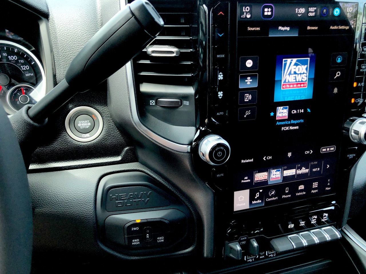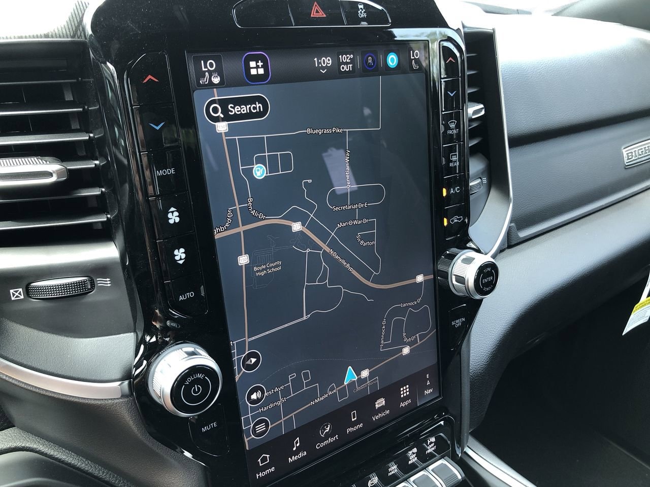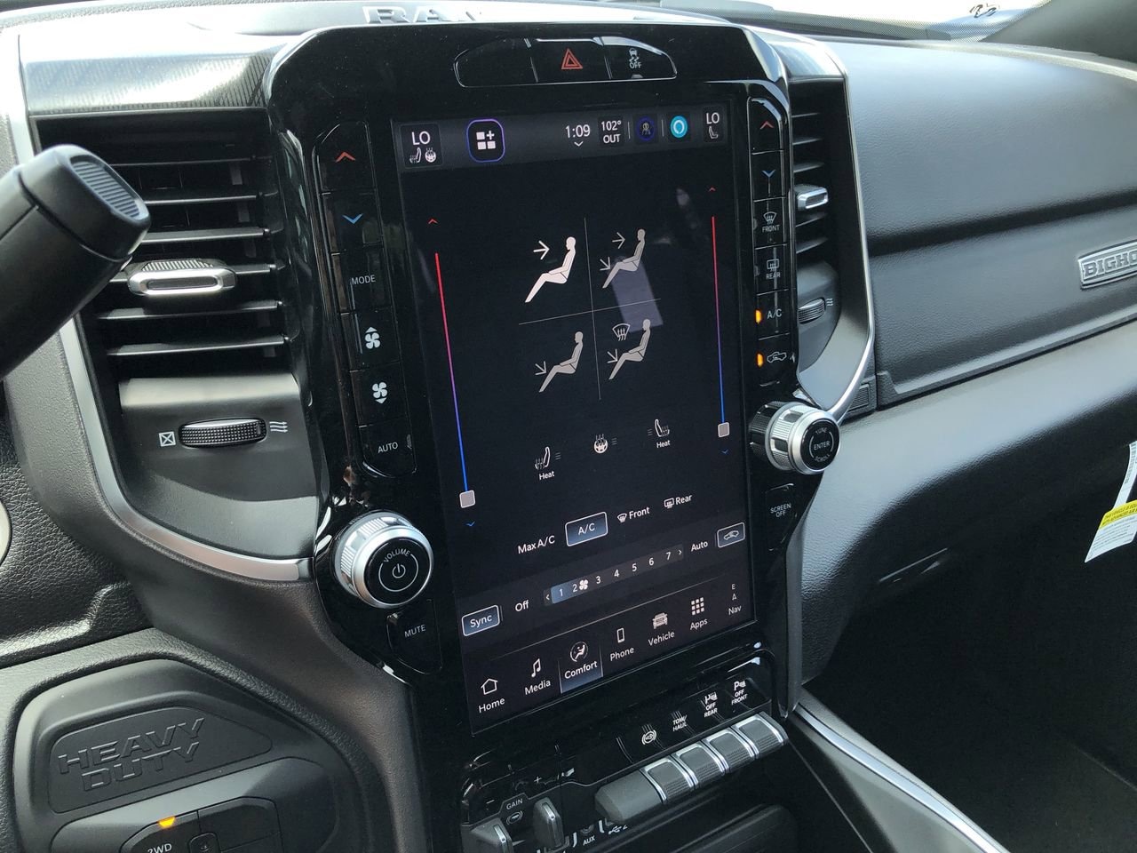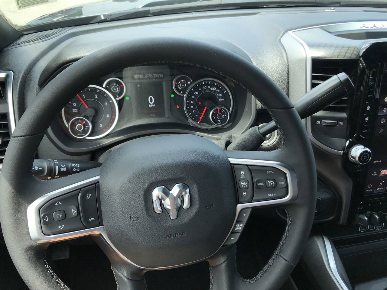 BIG HORN LEVEL 1 PLUS EQUIPMENT GROUP -inc: Emergency Vehicle Alert System (EVAS) Glove Box Lamp 12 Touchscreen Display Auto Power-Folding Mirrors Footwell Courtesy Lamp Anti-Spin Differential Rear Axle MOPAR Deployable Bed Step Alexa Built-In Forward & Reverse Utility Lights Locking Lower Glove Box Remote Start System 9 Alpine Speakers w/Subwoofer Dual Glove Boxes 2nd Row In Floor Storage Bins Rear View Auto Dim Mirror Rear Dome w/On/Off Switch Lamp LED Bed Lighting GPS Navigation SiriusXM w/360L Connected Travel & Traffic Services Foam Bottle Insert (Door Trim Panel) Big Horn IP Badge Off-Road Info Pages Trailer Tow Pages HD Radio Radio: Uconnect 5 Nav w/12.0 Display Power Heated Folding Telescopic Mirrors Steering Wheel Mounted Audio Controls Air Conditioning ATC w/Dual Zone Control MOPAR Spray In Bedliner Luxury Steering Wheel Power Telescoping Mirrors