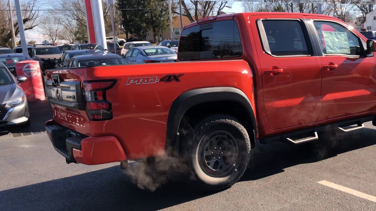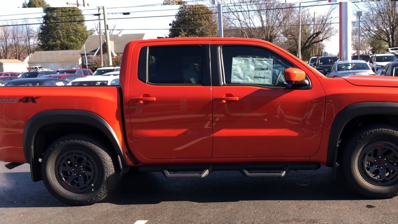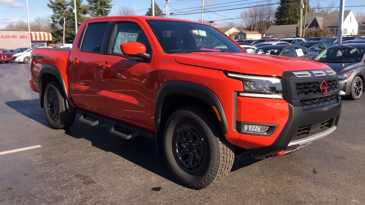 AFTERBURN ORANGE, [M92] ESSENTIALS KIT -inc: adventure medic kit off-road adventure kit seatback organizer and owner's manual portfolio, [F92] ELECTRONIC TAILGATE LOCK, [T11] TOW PACKAGE (T11) -inc: tow hitch and tow harness, [E10] PREMIUM PAINT, [K04] PRO-4X CONVENIENCE PACKAGE -inc: Bed Under-Rail Lighting Remote Engine Starter 120V Power Outlet in Bed Heated Front Seats Intelligent Around View Monitor (I-AVM) Moving Object Detection (MOD) and enhanced off-road mode Utili-Track System 2 adjustable tie-down cleats Spray-In Bedliner Trailer Hitch w/Wiring Harness Heated Steering Wheel Wireless Charging for Personal Devices Heated Outside Mirrors 120V Power Outlet in Rear Center Console, [B08] MUD FLAPS, [L11] PRO-4X CARPETED FLOOR MATS, CHARCOAL W/LAVA RED ST PRO EMBROIDERED PREMIUM CLOTH SEAT TRIM, [B93] OFF-ROAD STYLE STEP RAILS, Remote Engine Start, Four Wheel Drive, Locking/Limited Slip Differential, Power Steering, ABS, 4-Wheel Disc Brakes, Brake Assist, Locking/Limited Slip Differential, Brake Actuated Limited Slip Differential, Aluminum Wheels, Tires - Front All-Terrain, Tires - Rear All-Terrain, Conventional Spare Tire, Tow Hooks, Power Mirror(s), Sliding Rear Window, Privacy Glass, Intermittent Wipers, Variable Speed Intermittent Wipers, Power Door Locks, Automatic Highbeams, Fog Lamps, Daytime Running Lights, Automatic Headlights, LED Headlights, AM/FM Stereo, Satellite Radio, MP3 Capability, Steering Wheel Audio Controls, Bluetooth Connection, Auxiliary Audio Input, WiFi Hotspot, Smart Device Integration, Requires Subscription, MP3 Capability, Bluetooth Connection, Power Driver Seat, Power Passenger Seat, Bucket Seats, Heated Front Seat(s), Driver Adjustable Lumbar, Power Driver Seat, Pass-Through Rear Seat, Rear Bench Seat, Adjustable Steering Wheel, Trip Computer, Power Windows, WiFi Hotspot, Leather Steering Wheel, Heated Steering Wheel, Keyless Entry, Power Door Locks, Keyless Entry, Power Door Locks, Keyless Start, Cruise Control, Adaptive Cruise Control, Climate Control, Multi-Zone A/C, A/C, Cloth Seats, Driver Vanity Mirror, Passenger Vanity Mirror, Driver Illuminated Vanity Mirror, Passenger Illuminated Visor Mirror, Smart Device Integration, Power Windows, Sliding Rear Window, Power Door Locks, Trip Computer, Power Driver Seat, Immobilizer, Security System, Traction Control, Stability Control, Traction Control, Front Side Air Bag, Telematics, Requires Subscription, Rear Parking Aid, Blind Spot Monitor, Cross-Traffic Alert, Rear Collision Mitigation, Lane Departure Warning, Front Collision Mitigation, Driver Monitoring, Tire Pressure Monitor, Driver Air Bag, Passenger Air Bag, Front Head Air Bag, Rear Head Air Bag, Passenger Air Bag Sensor, Front Side Air Bag, Rear Side Air Bag, Knee Air Bag, Child Safety Locks, Back-Up Camera