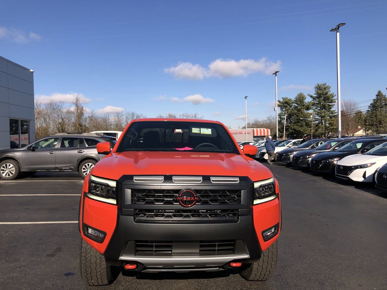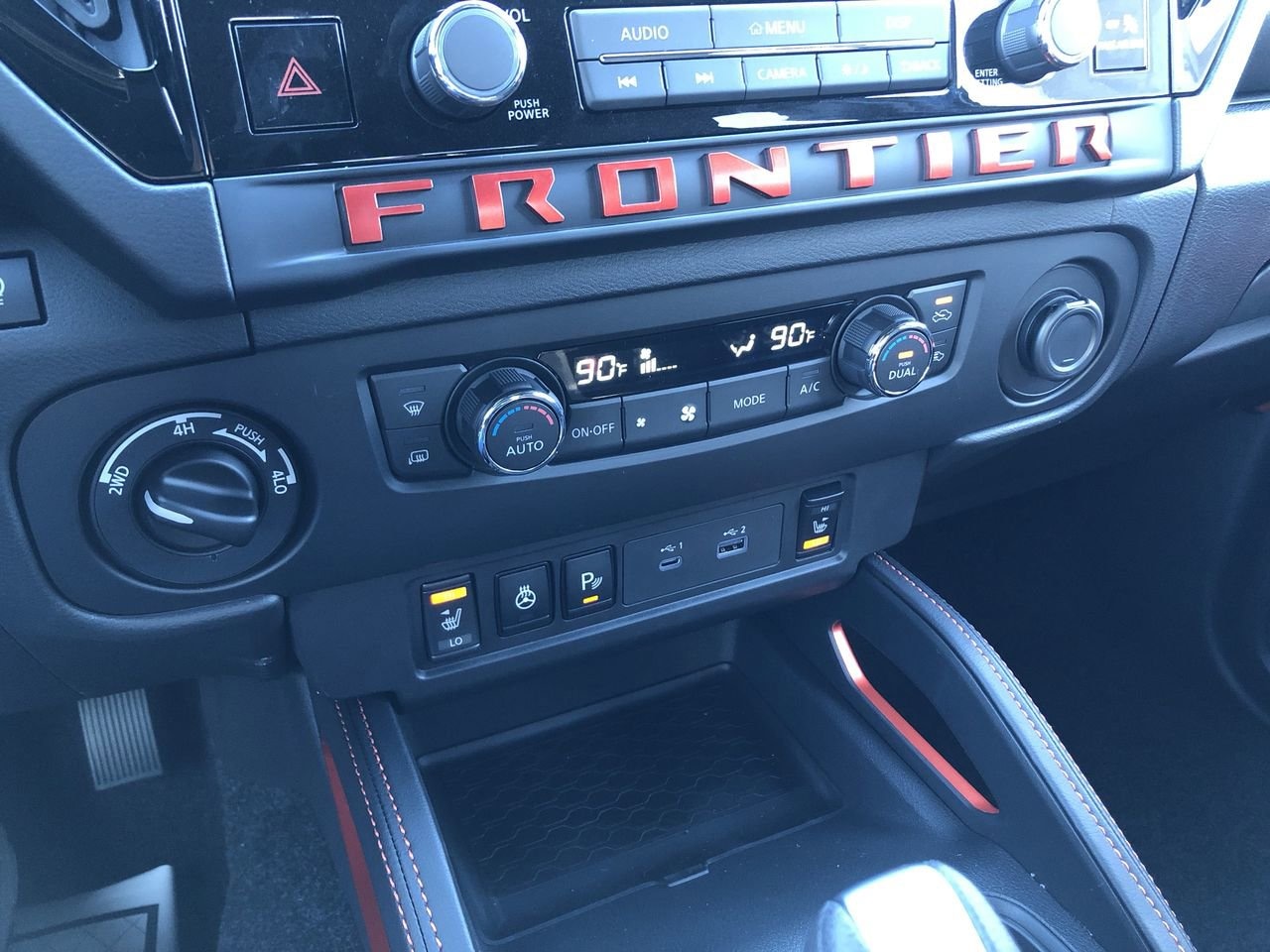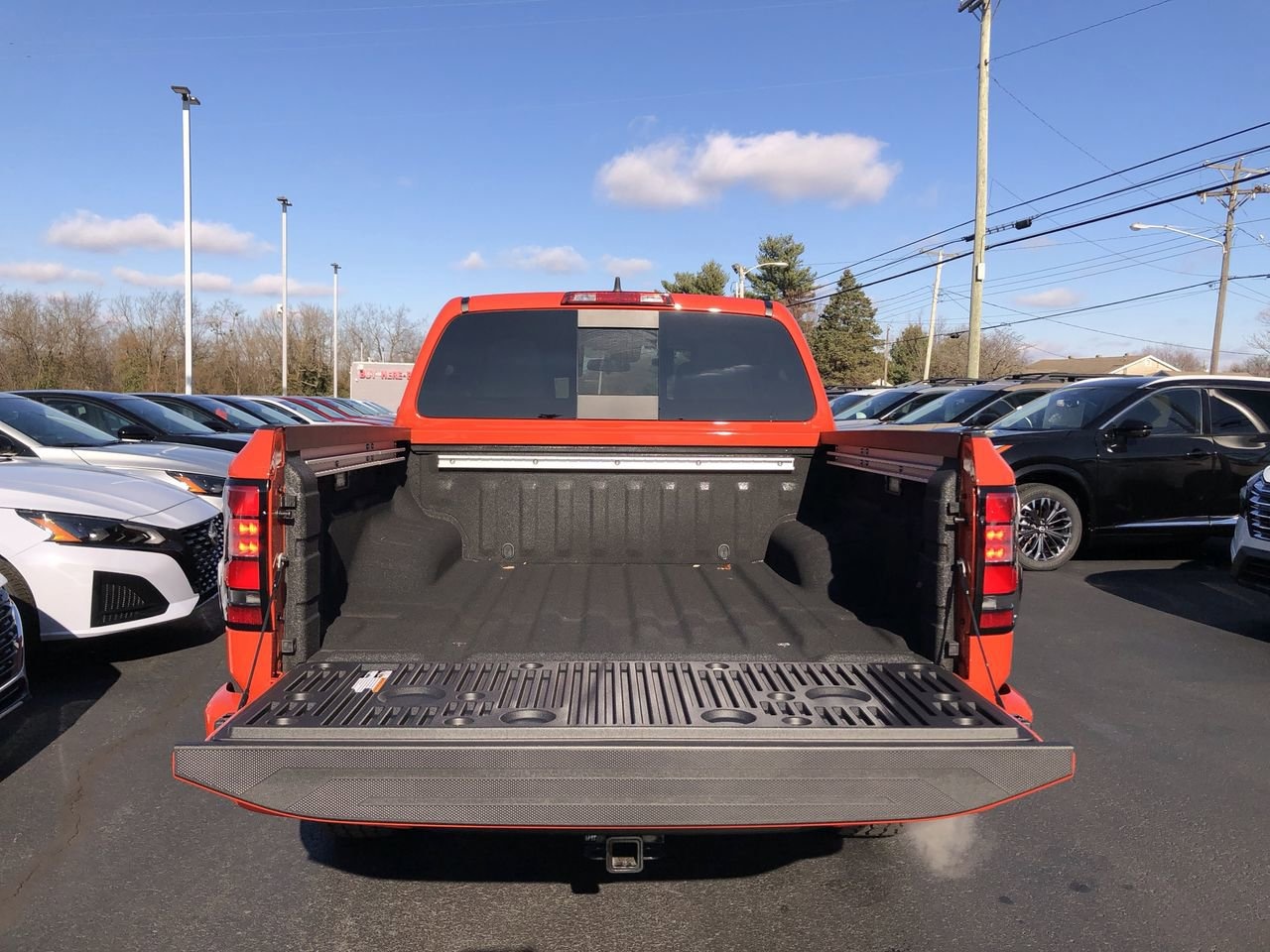 AFTERBURN ORANGE, [M92] ESSENTIALS KIT -inc: adventure medic kit off-road adventure kit seatback organizer and owner's manual portfolio, [F92] ELECTRONIC TAILGATE LOCK, [T11] TOW PACKAGE (T11) -inc: tow hitch and tow harness, [E10] PREMIUM PAINT, [K04] PRO-4X CONVENIENCE PACKAGE -inc: Bed Under-Rail Lighting Remote Engine Starter 120V Power Outlet in Bed Heated Front Seats Intelligent Around View Monitor (I-AVM) Moving Object Detection (MOD) and enhanced off-road mode Utili-Track System 2 adjustable tie-down cleats Spray-In Bedliner Trailer Hitch w/Wiring Harness Heated Steering Wheel Wireless Charging for Personal Devices Heated Outside Mirrors 120V Power Outlet in Rear Center Console, [B08] MUD FLAPS, [L11] PRO-4X CARPETED FLOOR MATS, CHARCOAL W/LAVA RED ST PRO EMBROIDERED PREMIUM CLOTH SEAT TRIM, [B93] OFF-ROAD STYLE STEP RAILS, Remote Engine Start, Four Wheel Drive, Locking/Limited Slip Differential, Power Steering, ABS, 4-Wheel Disc Brakes, Brake Assist, Locking/Limited Slip Differential, Brake Actuated Limited Slip Differential, Aluminum Wheels, Tires - Front All-Terrain, Tires - Rear All-Terrain, Conventional Spare Tire, Tow Hooks, Power Mirror(s), Sliding Rear Window, Privacy Glass, Intermittent Wipers, Variable Speed Intermittent Wipers, Power Door Locks, Automatic Highbeams, Fog Lamps, Daytime Running Lights, Automatic Headlights, LED Headlights, AM/FM Stereo, Satellite Radio, MP3 Capability, Steering Wheel Audio Controls, Bluetooth Connection, Auxiliary Audio Input, WiFi Hotspot, Smart Device Integration, Requires Subscription, MP3 Capability, Bluetooth Connection, Power Driver Seat, Power Passenger Seat, Bucket Seats, Heated Front Seat(s), Driver Adjustable Lumbar, Power Driver Seat, Pass-Through Rear Seat, Rear Bench Seat, Adjustable Steering Wheel, Trip Computer, Power Windows, WiFi Hotspot, Leather Steering Wheel, Heated Steering Wheel, Keyless Entry, Power Door Locks, Keyless Entry, Power Door Locks, Keyless Start, Cruise Control, Adaptive Cruise Control, Climate Control, Multi-Zone A/C, A/C, Cloth Seats, Driver Vanity Mirror, Passenger Vanity Mirror, Driver Illuminated Vanity Mirror, Passenger Illuminated Visor Mirror, Smart Device Integration, Power Windows, Sliding Rear Window, Power Door Locks, Trip Computer, Power Driver Seat, Immobilizer, Security System, Traction Control, Stability Control, Traction Control, Front Side Air Bag, Telematics, Requires Subscription, Rear Parking Aid, Blind Spot Monitor, Cross-Traffic Alert, Rear Collision Mitigation, Lane Departure Warning, Front Collision Mitigation, Driver Monitoring, Tire Pressure Monitor, Driver Air Bag, Passenger Air Bag, Front Head Air Bag, Rear Head Air Bag, Passenger Air Bag Sensor, Front Side Air Bag, Rear Side Air Bag, Knee Air Bag, Child Safety Locks, Back-Up Camera