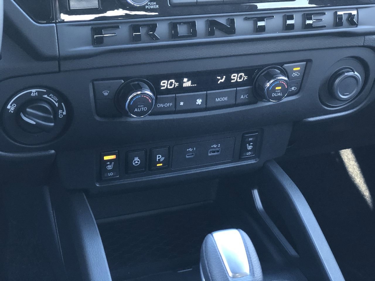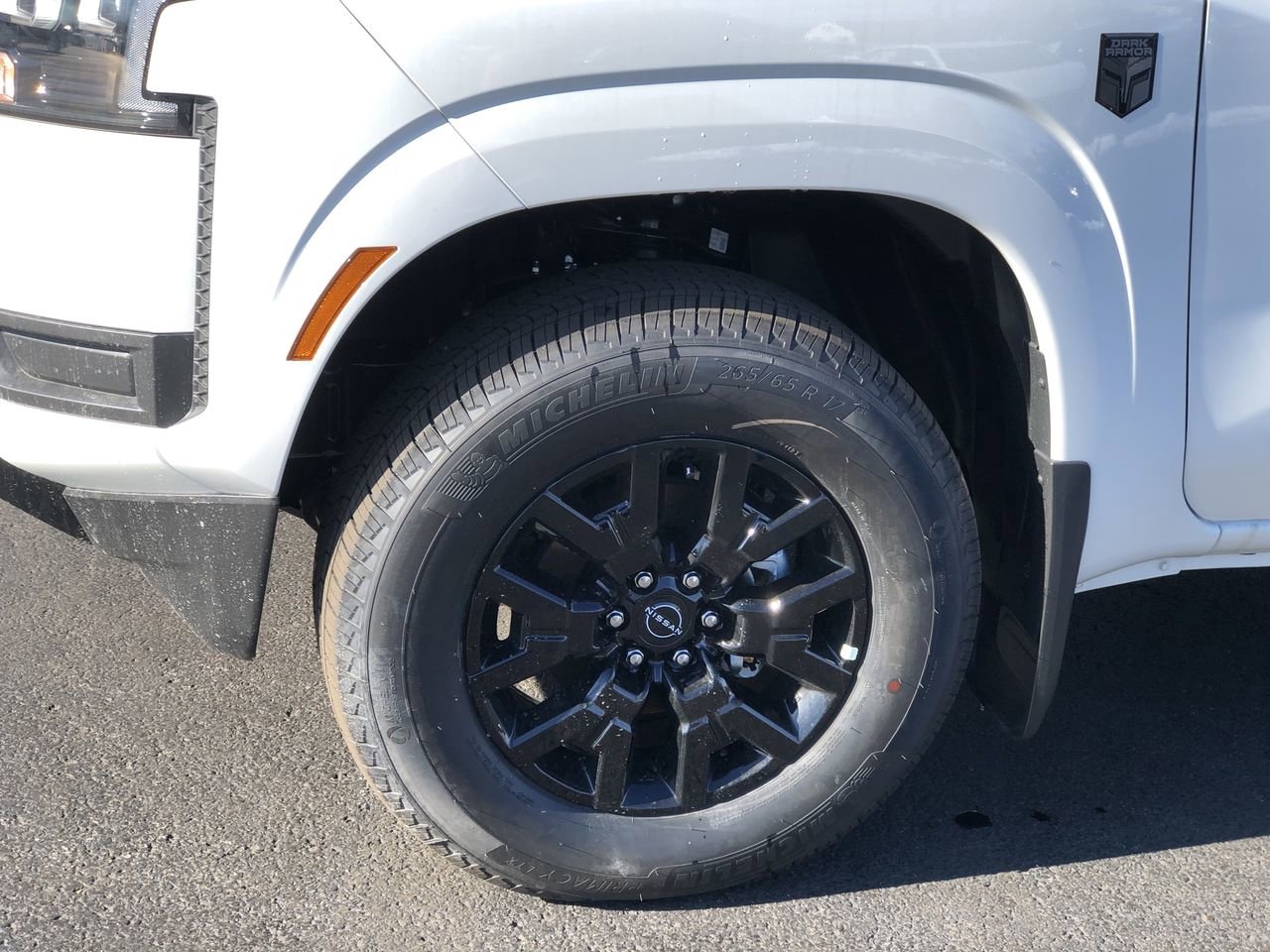 [L95] ALL SEASON FLOOR MATS -inc: Frontier logo and owner's manual portfolio, [B10] SPLASH GUARDS, [T92] TOW PACKAGE -inc: tow hitch and tow harness, CHARCOAL PREMIUM CLOTH SEAT TRIM, [K11] BLACK TAILGATE LOGO INSERT, [A93] DROP-IN BED LINER & BUMPER STEP, [X01] ALL-WEATHER CONTENT PACKAGE -inc: Remote Engine Starter HVAC - Dual-Zone Front Auto A/C Heated Leather Steering Wheel Heated Front Seats, [K05] DARK ARMOR PACKAGE -inc: dark 4x4 badge unique 'Dark Armor' badge dark interior finishers (D-rings/HVAC vent/shifter trim/IP lettering) dark headliner and dark interior door handles Dark FRONTIER Tailgate Lettering Dark Mirror Caps Wheels: 17 Dark Dark Grill Surround/Mesh/Inner Fascia, GLACIER WHITE, Four Wheel Drive, Power Steering, ABS, 4-Wheel Disc Brakes, Brake Assist, Brake Actuated Limited Slip Differential, Aluminum Wheels, Tires - Front All-Season, Tires - Rear All-Season, Conventional Spare Tire, Tow Hooks, Power Mirror(s), Sliding Rear Window, Privacy Glass, Intermittent Wipers, Variable Speed Intermittent Wipers, Power Door Locks, Automatic Headlights, LED Headlights, Automatic Highbeams, AM/FM Stereo, Satellite Radio, MP3 Capability, Steering Wheel Audio Controls, Bluetooth Connection, Auxiliary Audio Input, WiFi Hotspot, Smart Device Integration, Requires Subscription, MP3 Capability, Bluetooth Connection, Power Driver Seat, Bucket Seats, Driver Adjustable Lumbar, Power Driver Seat, Pass-Through Rear Seat, Rear Bench Seat, Adjustable Steering Wheel, Trip Computer, Power Windows, WiFi Hotspot, Keyless Start, Keyless Entry, Power Door Locks, Cruise Control, Adaptive Cruise Control, A/C, Cloth Seats, Driver Vanity Mirror, Passenger Vanity Mirror, Smart Device Integration, Power Windows, Sliding Rear Window, Power Door Locks, Trip Computer, Immobilizer, Security System, Traction Control, Stability Control, Traction Control, Front Side Air Bag, Telematics, Requires Subscription, Rear Parking Aid, Blind Spot Monitor, Cross-Traffic Alert, Rear Collision Mitigation, Lane Departure Warning, Front Collision Mitigation, Driver Monitoring, Tire Pressure Monitor, Driver Air Bag, Passenger Air Bag, Front Head Air Bag, Rear Head Air Bag, Passenger Air Bag Sensor, Front Side Air Bag, Rear Side Air Bag, Knee Air Bag, Child Safety Locks, Back-Up Camera
