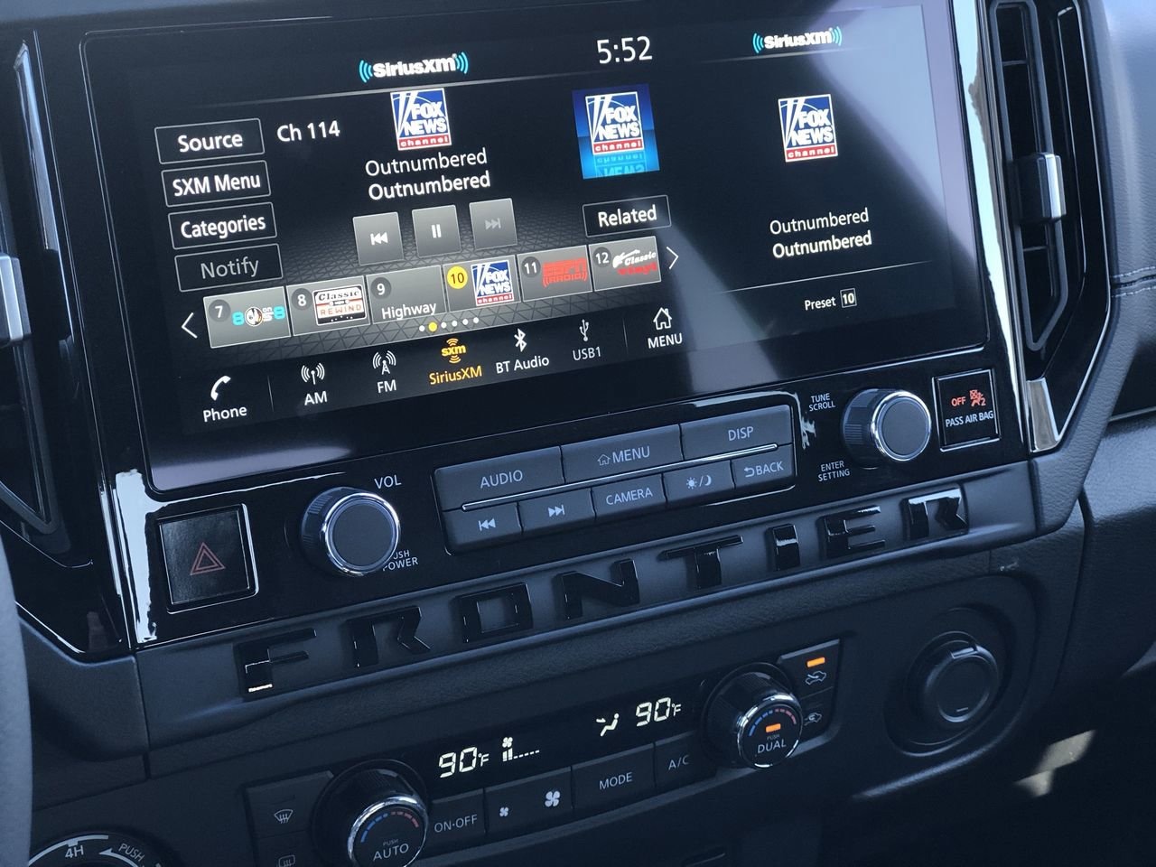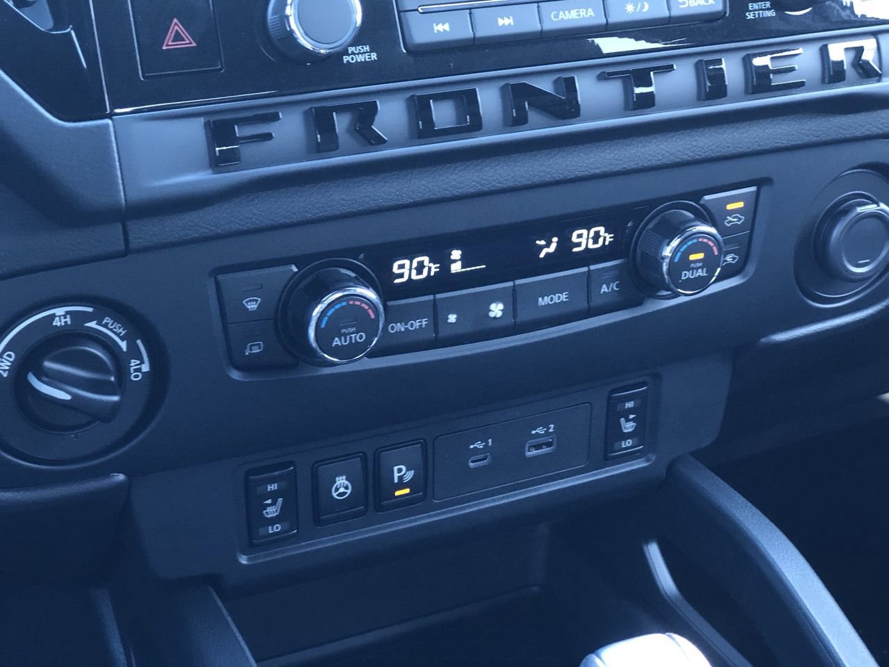 [F92] ELECTRONIC TAILGATE LOCK, [B10] SPLASH GUARDS, CHARCOAL PREMIUM CLOTH SEAT TRIM, [T11] TOW PACKAGE (T11) -inc: tow hitch and tow harness, [K11] BLACK TAILGATE LOGO INSERT, [K02] SV CONVENIENCE PACKAGE -inc: Bed Under-Rail Lighting Remote Engine Starter 120V Power Outlet in Bed Heated Front Seats Locking Glove Box Utili-Track System 2 adjustable tie-down cleats Spray-In Bedliner Trailer Hitch w/Wiring Harness HVAC - Dual-Zone Front Auto A/C I-Key w/Request Switches on O/S Handles Full-function Heated Leather Steering Wheel Tow/Haul Mode Switch Heated Outside Mirrors 120V Power Outlet in Rear Center Console, [K05] DARK ARMOR PACKAGE -inc: dark 4x4 badge unique 'Dark Armor' badge dark interior finishers (D-rings/HVAC vent/shifter trim/IP lettering) dark headliner and dark interior door handles Dark FRONTIER Tailgate Lettering Dark Mirror Caps Wheels: 17 Dark Dark Grill Surround/Mesh/Inner Fascia, GLACIER WHITE, [L93] CARPETED FLOOR MATS -inc: owner's manual portfolio, Four Wheel Drive, Power Steering, ABS, 4-Wheel Disc Brakes, Brake Assist, Brake Actuated Limited Slip Differential, Aluminum Wheels, Tires - Front All-Season, Tires - Rear All-Season, Conventional Spare Tire, Tow Hooks, Power Mirror(s), Sliding Rear Window, Privacy Glass, Intermittent Wipers, Variable Speed Intermittent Wipers, Power Door Locks, Automatic Headlights, LED Headlights, Automatic Highbeams, AM/FM Stereo, Satellite Radio, MP3 Capability, Steering Wheel Audio Controls, Bluetooth Connection, Auxiliary Audio Input, WiFi Hotspot, Smart Device Integration, Requires Subscription, MP3 Capability, Bluetooth Connection, Power Driver Seat, Bucket Seats, Driver Adjustable Lumbar, Power Driver Seat, Pass-Through Rear Seat, Rear Bench Seat, Adjustable Steering Wheel, Trip Computer, Power Windows, WiFi Hotspot, Keyless Start, Keyless Entry, Power Door Locks, Cruise Control, Adaptive Cruise Control, A/C, Cloth Seats, Driver Vanity Mirror, Passenger Vanity Mirror, Smart Device Integration, Power Windows, Sliding Rear Window, Power Door Locks, Trip Computer, Immobilizer, Security System, Traction Control, Stability Control, Traction Control, Front Side Air Bag, Telematics, Requires Subscription, Rear Parking Aid, Blind Spot Monitor, Cross-Traffic Alert, Rear Collision Mitigation, Lane Departure Warning, Front Collision Mitigation, Driver Monitoring, Tire Pressure Monitor, Driver Air Bag, Passenger Air Bag, Front Head Air Bag, Rear Head Air Bag, Passenger Air Bag Sensor, Front Side Air Bag, Rear Side Air Bag, Knee Air Bag, Child Safety Locks, Back-Up Camera