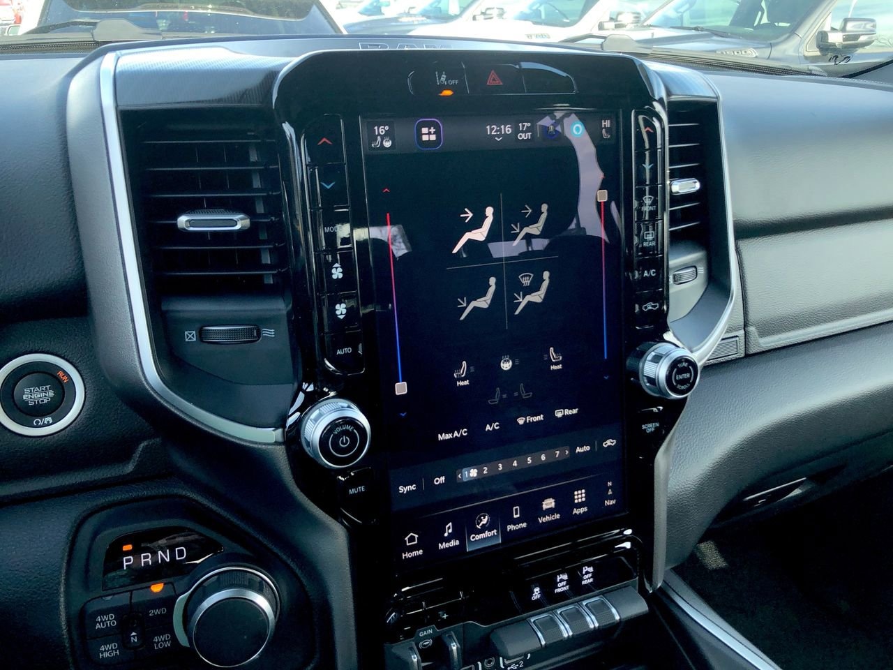 BLACK DELUXE CLOTH BUCKET SEATS -inc: Power Adjust 8-Way Driver Seat Rear 60/40 Folding Seat Rear Center Armrest Front Seat Back Map Pockets Power 2-Way Driver Lumbar Adjust, 3.55 REAR AXLE RATIO, BRIGHT WHITE CLEARCOAT, QUICK ORDER PACKAGE 21Z BIG HORN -inc: Engine: 3.0L I6 Hurricane SO Twin Turbo ESS Transmission: 8-Speed Automatic (8HP75), WHEELS: 20 X 9.0 ALUMINUM PAINTED CLAD, NIGHT EDITION -inc: Tires: 275/55R20 OWL All Season Bridgestone Brand Tires Accent Color Premium Power Mirrors Exterior Mirrors w/Supplemental Signals Black Headlamp Bezels Exterior Mirrors Courtesy Lamps Grille Black Surround Black Mesh Auto Power-Folding Mirrors Wheels: 20 x 9.0 Aluminum Painted Clad Auto Dim Exterior Driver Mirror Black Exterior Truck Badging Anti-Spin Differential Rear Axle Accent Color Door Handles Accent Color Tailgate Handle Black Interior Accents Dual Exhaust w/Black Tips Body Color Front Bumper Body Color Rear Bumper w/Step Pads Black Tail Lamp Bezels RAM Grille Badge - Black Black Painted Exterior Mirrors Caps, REAR WHEELHOUSE LINERS, 9 AMPLIFIED SPEAKERS W/SUBWOOFER, GVWR: 7 100 LBS, ENGINE: 3.0L I6 HURRICANE SO TWIN TURBO ESS -inc: Aux Battery 700 Amp Maintenance Free Battery Active Noise Control System GVWR: 7 100 lbs 3.55 Rear Axle Ratio Dual Rear Exhaust w/Bright Tips Start-Stop Dual Battery System 230 Amp Alternator, RADIO: UCONNECT 5 NAV W/12.0 DISPLAY, TRANSMISSION: 8-SPEED AUTOMATIC (8HP75), TIRES: 275/55R20 OWL ALL SEASON -inc: Bridgestone Brand Tires, TRAILER BRAKE CONTROL, FRONT LICENSE PLATE BRACKET, ANTI-SPIN DIFFERENTIAL REAR AXLE, BIG HORN LEVEL 2 EQUIPMENT GROUP -inc: SiriusXM Radio Service Power Adjustable Pedals Leather Wrapped Steering Wheel 12 Touchscreen Display Glove Box Lamp Auto Power-Folding Mirrors 115V Auxiliary Rear Power Outlet Media Hub w/2 Charge Only USBs Heated Front Seats Security Alarm Black Premium Power Mirrors Premium Overhead Console 9 Amplified Speakers w/Subwoofer Disassociated Touchscreen Display Body Color Fender Flares Remote Tailgate Release 115V Auxiliary Power Outlet LED Dome Lamp w/On/Off Switch Universal Garage Door Opener 2nd Row In Floor Storage Bins Sun Visors w/Illuminated Vanity Mirrors LED Footwell Lighting Rear Window Defroster Rear View Auto Dim Mirror Rear Power Sliding Window GPS Navigation Overhead LED Lamps Wheels: 20 x 9 Aluminum Chrome Clad (WRK) Tires: 275/55R20 OWL All Season Bridgestone Brand Tires Auto Dim Exterior Driver Mirror SiriusXM w/360L Connected Travel & Traffic Services Heated Steering Wheel Configurable Drive Mod, Four Wheel Drive, Tow Hitch, Power Steering, ABS, 4-Wheel Disc Brakes, Brake Assist, Lithium Ion Traction Battery, Conventional Spare Tire, Power Mirror(s), Heated Mirrors, Privacy Glass, Intermittent Wipers, Variable Speed Intermittent Wipers, Power Door Locks, Daytime Running Lights, Automatic Headlights, LED Headlights, Fog Lamps, Automatic Highbeams, AM/FM Stereo, Bluetooth Connection, MP3 Capability, Auxiliary Audio Input, Rear Bench Seat, Adjustable Steering Wheel, Trip Computer, Power Windows, Keyless Start, Keyless Entry, Power Door Locks, Cruise Control, Adaptive Cruise Control, A/C, Cloth Seats, Bucket Seats, Passenger Vanity Mirror, Floor Mats, Remote Engine Start, Keyless Start, Remote Engine Start, Smart Device Integration, Requires Subscription, Smart Device Integration, Smart Device Integration, WiFi Hotspot, Bluetooth Connection, Power Windows, Power Door Locks, Trip Computer, Immobilizer, Traction Control, Stability Control, Traction Control, Front Side Air Bag, Rear Parking Aid, Blind Spot Monitor, Cross-Traffic Alert, Front Collision Mitigation, Lane Departure Warning, Lane Keeping Assist, Lane Departure Warning, Tire Pressure Monitor, Driver Air Bag, Passenger Air Bag, Front Head Air Bag, Rear Head Air Bag, Passenger Air Bag Sensor, Child Safety Locks, Back-Up Camera