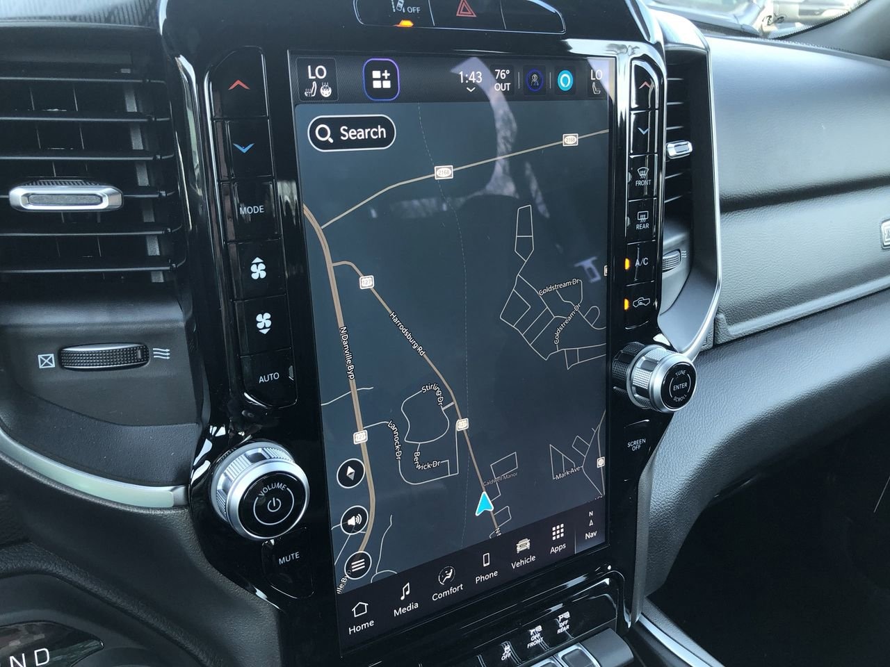 BLACK DELUXE CLOTH BUCKET SEATS -inc: Power Adjust 8-Way Driver Seat Rear 60/40 Folding Seat Rear Center Armrest Front Seat Back Map Pockets Power 2-Way Driver Lumbar Adjust, 3.55 REAR AXLE RATIO, QUICK ORDER PACKAGE 21Z BIG HORN -inc: Engine: 3.0L I6 Hurricane SO Twin Turbo ESS Transmission: 8-Speed Automatic (8HP75), WHEELS: 20 X 9.0 ALUMINUM PAINTED CLAD, NIGHT EDITION -inc: Tires: 275/55R20 OWL All Season Bridgestone Brand Tires Accent Color Premium Power Mirrors Exterior Mirrors w/Supplemental Signals Black Headlamp Bezels Exterior Mirrors Courtesy Lamps Grille Black Surround Black Mesh Auto Power-Folding Mirrors Wheels: 20 x 9.0 Aluminum Painted Clad Auto Dim Exterior Driver Mirror Black Exterior Truck Badging Anti-Spin Differential Rear Axle Accent Color Door Handles Accent Color Tailgate Handle Black Interior Accents Dual Exhaust w/Black Tips Body Color Front Bumper Body Color Rear Bumper w/Step Pads Black Tail Lamp Bezels RAM Grille Badge - Black Black Painted Exterior Mirrors Caps, REAR WHEELHOUSE LINERS, 9 AMPLIFIED SPEAKERS W/SUBWOOFER, GVWR: 7 100 LBS, ENGINE: 3.0L I6 HURRICANE SO TWIN TURBO ESS -inc: Aux Battery 700 Amp Maintenance Free Battery Active Noise Control System GVWR: 7 100 lbs 3.55 Rear Axle Ratio Dual Rear Exhaust w/Bright Tips Start-Stop Dual Battery System 230 Amp Alternator, RADIO: UCONNECT 5 NAV W/12.0 DISPLAY, TRANSMISSION: 8-SPEED AUTOMATIC (8HP75), TIRES: 275/55R20 OWL ALL SEASON -inc: Bridgestone Brand Tires, TRAILER BRAKE CONTROL, FRONT LICENSE PLATE BRACKET, ANTI-SPIN DIFFERENTIAL REAR AXLE, GRANITE CRYSTAL METALLIC CLEARCOAT, BIG HORN LEVEL 2 EQUIPMENT GROUP -inc: SiriusXM Radio Service Power Adjustable Pedals Leather Wrapped Steering Wheel 12 Touchscreen Display Glove Box Lamp Auto Power-Folding Mirrors 115V Auxiliary Rear Power Outlet Media Hub w/2 Charge Only USBs Heated Front Seats Security Alarm Black Premium Power Mirrors Premium Overhead Console 9 Amplified Speakers w/Subwoofer Disassociated Touchscreen Display Body Color Fender Flares Remote Tailgate Release 115V Auxiliary Power Outlet LED Dome Lamp w/On/Off Switch Universal Garage Door Opener 2nd Row In Floor Storage Bins Sun Visors w/Illuminated Vanity Mirrors LED Footwell Lighting Rear Window Defroster Rear View Auto Dim Mirror Rear Power Sliding Window GPS Navigation Overhead LED Lamps Wheels: 20 x 9 Aluminum Chrome Clad (WRK) Tires: 275/55R20 OWL All Season Bridgestone Brand Tires Auto Dim Exterior Driver Mirror SiriusXM w/360L Connected Travel & Traffic Services Heated Steering Wheel Configurable Drive Mod, Four Wheel Drive, Tow Hitch, Power Steering, ABS, 4-Wheel Disc Brakes, Brake Assist, Lithium Ion Traction Battery, Conventional Spare Tire, Power Mirror(s), Heated Mirrors, Privacy Glass, Intermittent Wipers, Variable Speed Intermittent Wipers, Power Door Locks, Daytime Running Lights, Automatic Headlights, LED Headlights, Fog Lamps, Automatic Highbeams, AM/FM Stereo, Bluetooth Connection, MP3 Capability, Auxiliary Audio Input, Rear Bench Seat, Adjustable Steering Wheel, Trip Computer, Power Windows, Keyless Start, Keyless Entry, Power Door Locks, Cruise Control, Adaptive Cruise Control, A/C, Cloth Seats, Bucket Seats, Passenger Vanity Mirror, Floor Mats, Remote Engine Start, Keyless Start, Remote Engine Start, Smart Device Integration, Requires Subscription, Smart Device Integration, Smart Device Integration, WiFi Hotspot, Bluetooth Connection, Power Windows, Power Door Locks, Trip Computer, Immobilizer, Traction Control, Stability Control, Traction Control, Front Side Air Bag, Rear Parking Aid, Blind Spot Monitor, Cross-Traffic Alert, Front Collision Mitigation, Lane Departure Warning, Lane Keeping Assist, Lane Departure Warning, Tire Pressure Monitor, Driver Air Bag, Passenger Air Bag, Front Head Air Bag, Rear Head Air Bag, Passenger Air Bag Sensor, Child Safety Locks, Back-Up Camera