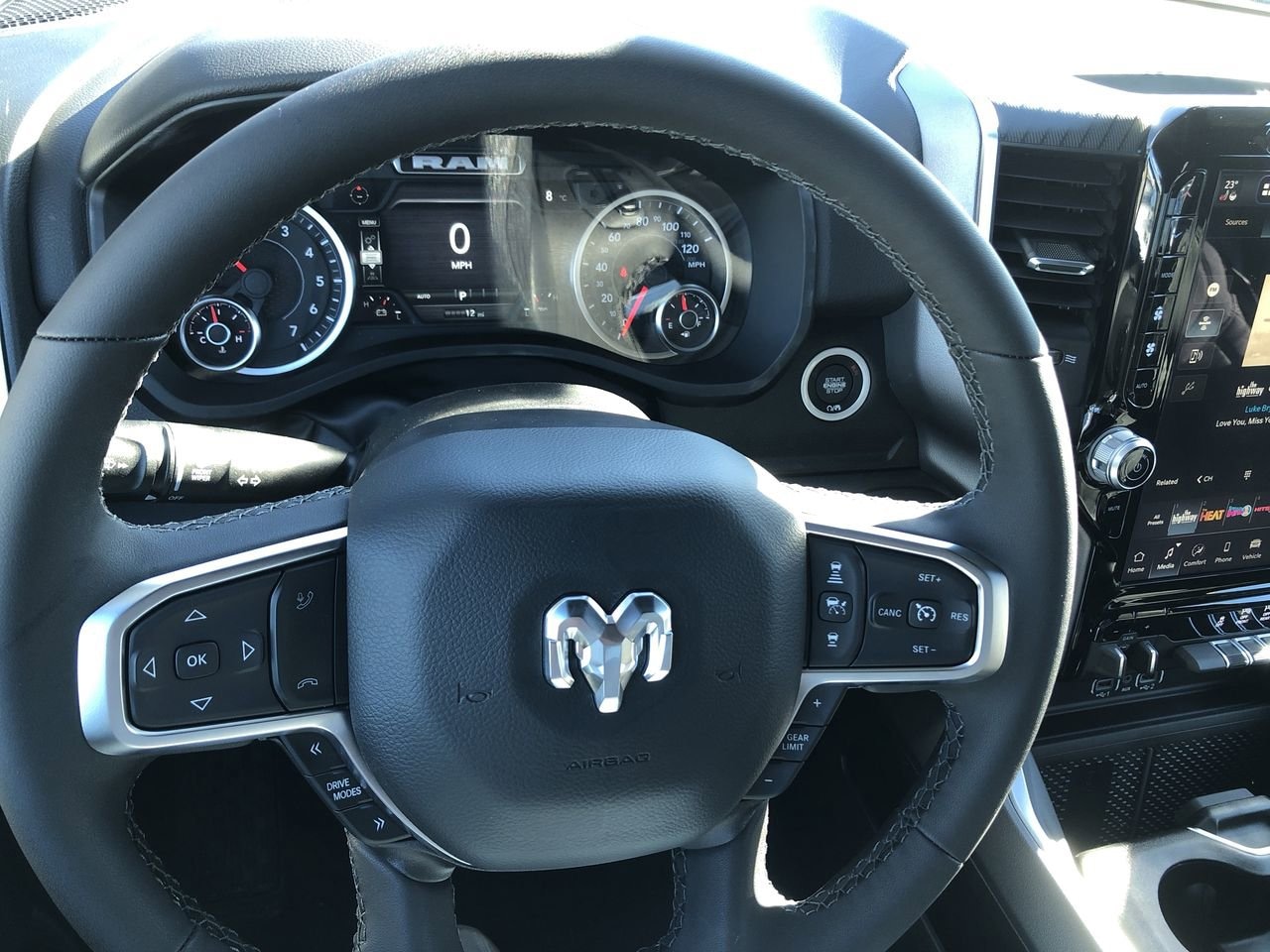 3.92 REAR AXLE RATIO, BLACK DELUXE CLOTH BUCKET SEATS -inc: Power Adjust 8-Way Driver Seat Rear 60/40 Folding Seat Rear Center Armrest Front Seat Back Map Pockets Power 2-Way Driver Lumbar Adjust, WHEELS: 20 X 9.0 ALUMINUM PAINTED CLAD, NIGHT EDITION -inc: Tires: 275/55R20 OWL All Season Bridgestone Brand Tires Accent Color Premium Power Mirrors Exterior Mirrors w/Supplemental Signals Black Headlamp Bezels Exterior Mirrors Courtesy Lamps Grille Black Surround Black Mesh Auto Power-Folding Mirrors Wheels: 20 x 9.0 Aluminum Painted Clad Auto Dim Exterior Driver Mirror Black Exterior Truck Badging Anti-Spin Differential Rear Axle Accent Color Door Handles Accent Color Tailgate Handle Black Interior Accents Dual Exhaust w/Black Tips Body Color Front Bumper Body Color Rear Bumper w/Step Pads Black Tail Lamp Bezels RAM Grille Badge - Black Black Painted Exterior Mirrors Caps, HYDRO BLUE PEARLCOAT, REAR WHEELHOUSE LINERS, 9 AMPLIFIED SPEAKERS W/SUBWOOFER, GVWR: 7 100 LBS, RADIO: UCONNECT 5 NAV W/12.0 DISPLAY, ENGINE: 5.7L V8 HEMI MDS VVT ETORQUE -inc: Active Noise Control System Heavy Duty Engine Cooling Passive Tuned Mass Damper GVWR: 7 100 lbs Dual Rear Exhaust w/Bright Tips G/T Exhaust 18 Aluminum Spare Wheel, TRANSMISSION: 8-SPEED AUTOMATIC (8HP75), 33 GALLON FUEL TANK, TIRES: 275/55R20 OWL ALL SEASON -inc: Bridgestone Brand Tires, TRAILER BRAKE CONTROL, FRONT LICENSE PLATE BRACKET, ANTI-SPIN DIFFERENTIAL REAR AXLE, QUICK ORDER PACKAGE 27Z BIG HORN -inc: Engine: 5.7L V8 HEMI MDS VVT eTorque Transmission: 8-Speed Automatic (8HP75), BIG HORN LEVEL 2 EQUIPMENT GROUP -inc: SiriusXM Radio Service Power Adjustable Pedals Leather Wrapped Steering Wheel 12 Touchscreen Display Glove Box Lamp Auto Power-Folding Mirrors 115V Auxiliary Rear Power Outlet Media Hub w/2 Charge Only USBs Heated Front Seats Security Alarm Black Premium Power Mirrors Premium Overhead Console 9 Amplified Speakers w/Subwoofer Disassociated Touchscreen Display Body Color Fender Flares Remote Tailgate Release 115V Auxiliary Power Outlet LED Dome Lamp w/On/Off Switch Universal Garage Door Opener 2nd Row In Floor Storage Bins Sun Visors w/Illuminated Vanity Mirrors LED Footwell Lighting Rear Window Defroster Rear View Auto Dim Mirror Rear Power Sliding Window GPS Navigation Overhead LED Lamps Wheels: 20 x 9 Aluminum Chrome Clad (WRK) Tires: 275/55R20 OWL All Season Bridgestone Brand Tires Auto Dim Exterior Driver Mirror SiriusXM w/360L Connected Travel & Traffic Services Heated Steering Wheel Configurable Drive Mod, Four Wheel Drive, Tow Hitch, Power Steering, ABS, 4-Wheel Disc Brakes, Brake Assist, Lithium Ion Traction Battery, Conventional Spare Tire, Power Mirror(s), Heated Mirrors, Privacy Glass, Intermittent Wipers, Variable Speed Intermittent Wipers, Power Door Locks, Daytime Running Lights, Automatic Headlights, LED Headlights, Fog Lamps, Automatic Highbeams, AM/FM Stereo, Bluetooth Connection, MP3 Capability, Auxiliary Audio Input, Rear Bench Seat, Adjustable Steering Wheel, Trip Computer, Power Windows, Keyless Start, Keyless Entry, Power Door Locks, Cruise Control, Adaptive Cruise Control, A/C, Cloth Seats, Bucket Seats, Passenger Vanity Mirror, Floor Mats, Remote Engine Start, Keyless Start, Remote Engine Start, Smart Device Integration, Requires Subscription, Smart Device Integration, Smart Device Integration, WiFi Hotspot, Bluetooth Connection, Power Windows, Power Door Locks, Trip Computer, Immobilizer, Traction Control, Stability Control, Traction Control, Front Side Air Bag, Rear Parking Aid, Blind Spot Monitor, Cross-Traffic Alert, Front Collision Mitigation, Lane Departure Warning, Lane Keeping Assist, Lane Departure Warning, Tire Pressure Monitor, Driver Air Bag, Passenger Air Bag, Front Head Air Bag, Rear Head Air Bag, Passenger Air Bag Sensor, Child Safety Locks, Back-Up Camera