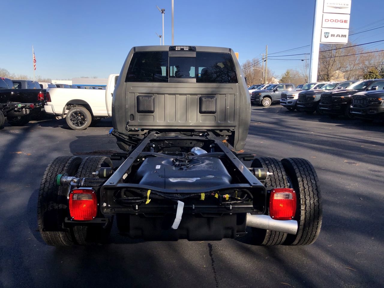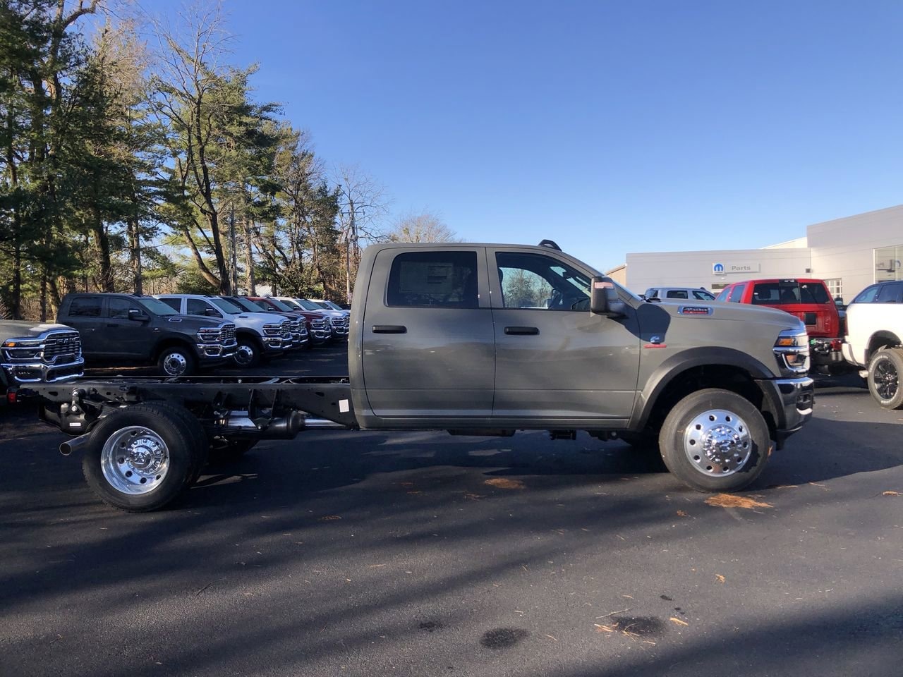 QUICK ORDER PACKAGE 25A TRADESMAN -inc: Engine: 6.7L I6 Cummins Turbo Diesel Transmission: 8-Speed TorqueFlite HD Automatic (DFM), CERAMIC GRAY CLEARCOAT, DUAL ALTERNATORS RATED AT 480 AMPS, TRADESMAN LEVEL 2 EQUIPMENT GROUP -inc: SiriusXM Radio Service Rear Window Defroster For More Info Call 800-643-2112 Rear Power Sliding Window 12.0 Touchscreen Display Tinted Acoustic Windshield Glass GPS Navigation Exterior Mirrors w/Heating Element SiriusXM w/360L Trailer Brake Control Trailer Light Check Connected Travel & Traffic Services Mirror Running Lights Alexa Built-In Power-Adjustable Convex Aux Mirrors Off-Road Info Pages Trailer Tow Pages Remote Start System 400W Inverter Disassociated Touchscreen Display HD Radio Mirror Power Heat Fold Telescope Black Radio: Uconnect 5 Nav w/12.0 Display Exterior Mirrors w/Supplemental Signals Exterior Mirrors Courtesy Lamps Air Conditioning ATC w/Dual Zone Control 115V Auxiliary Power Outlet Power Adjust Mirrors Digital Rearview Mirror, TRANSMISSION: 8-SPEED TORQUEFLITE HD AUTOMATIC (DFM), WHEELS: 19.5 X 6.0 FORGED ALUMINUM POLISHED -inc: Center Hub, BLACK CLOTH 40/20/40 BENCH SEAT -inc: 4 Way Front Headrests, RADIO: UCONNECT 5 NAV W/12.0 DISPLAY, TRAILER BRAKE CONTROL -inc: Trailer Light Check, CARGO & CHMSL LAMP, ENGINE: 6.7L I6 CUMMINS TURBO DIESEL -inc: Selective Catalytic Reduction (Urea) Dual 730 Amp Maintenance Free Batteries Clean Idle Emissions Label Cummins Turbo Diesel Badge Current Generation Engine Controller Smart Diesel Exhaust Brake Supplemental Heater B-20 Bio Diesel Capability, GVWR: 16 500 LBS (STD), CHROME APPEARANCE GROUP -inc: Chrome Grille Surround Matte Black Mesh Grille w/Chrome Wheels: 19.5 x 6.0 Steel Center Hub Bright Front Bumper, TIRES: 225/70R19.5G FT ALL POSITION RR TRACTION (STD), FRONT LICENSE PLATE BRACKET, PARKVIEW REAR BACK UP CAMERA, Four Wheel Drive, Power Steering, Dual Rear Wheels, ABS, 4-Wheel Disc Brakes, Locking/Limited Slip Differential, Tires - Rear All-Terrain, Tow Hooks, Intermittent Wipers, Variable Speed Intermittent Wipers, Daytime Running Lights, Automatic Headlights, LED Headlights, Fog Lamps, AM/FM Stereo, Satellite Radio, Bluetooth Connection, Requires Subscription, MP3 Capability, Auxiliary Audio Input, Adjustable Steering Wheel, Power Windows, Rear Bench Seat, Keyless Start, Keyless Entry, Power Door Locks, Cruise Control, Adaptive Cruise Control, A/C, Split Bench Seat, Passenger Vanity Mirror, Remote Engine Start, Keyless Start, Remote Engine Start, Smart Device Integration, Requires Subscription, Smart Device Integration, Smart Device Integration, MP3 Capability, WiFi Hotspot, Bluetooth Connection, Power Windows, Power Door Locks, Split Bench Seat, Immobilizer, Traction Control, Stability Control, Traction Control, Telematics, Requires Subscription, Front Collision Mitigation, Driver Air Bag, Passenger Air Bag, Passenger Air Bag Sensor, Child Safety Locks