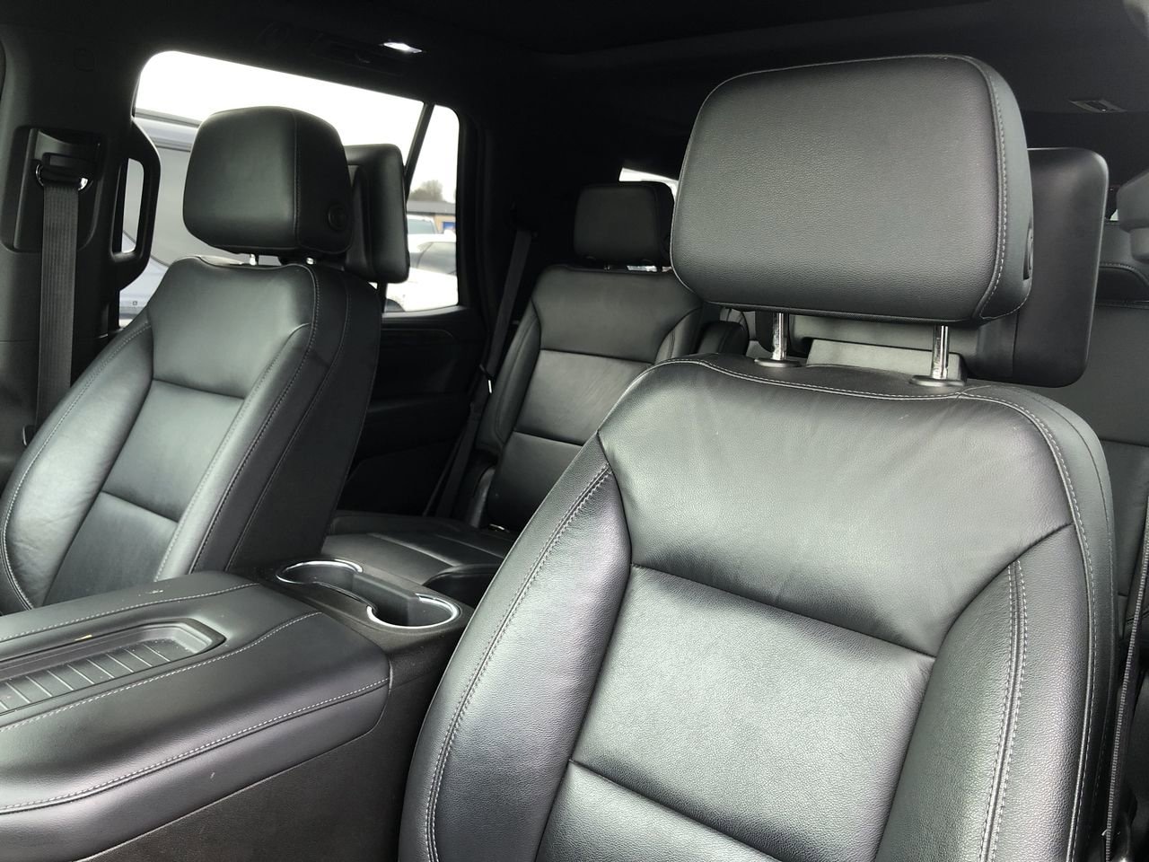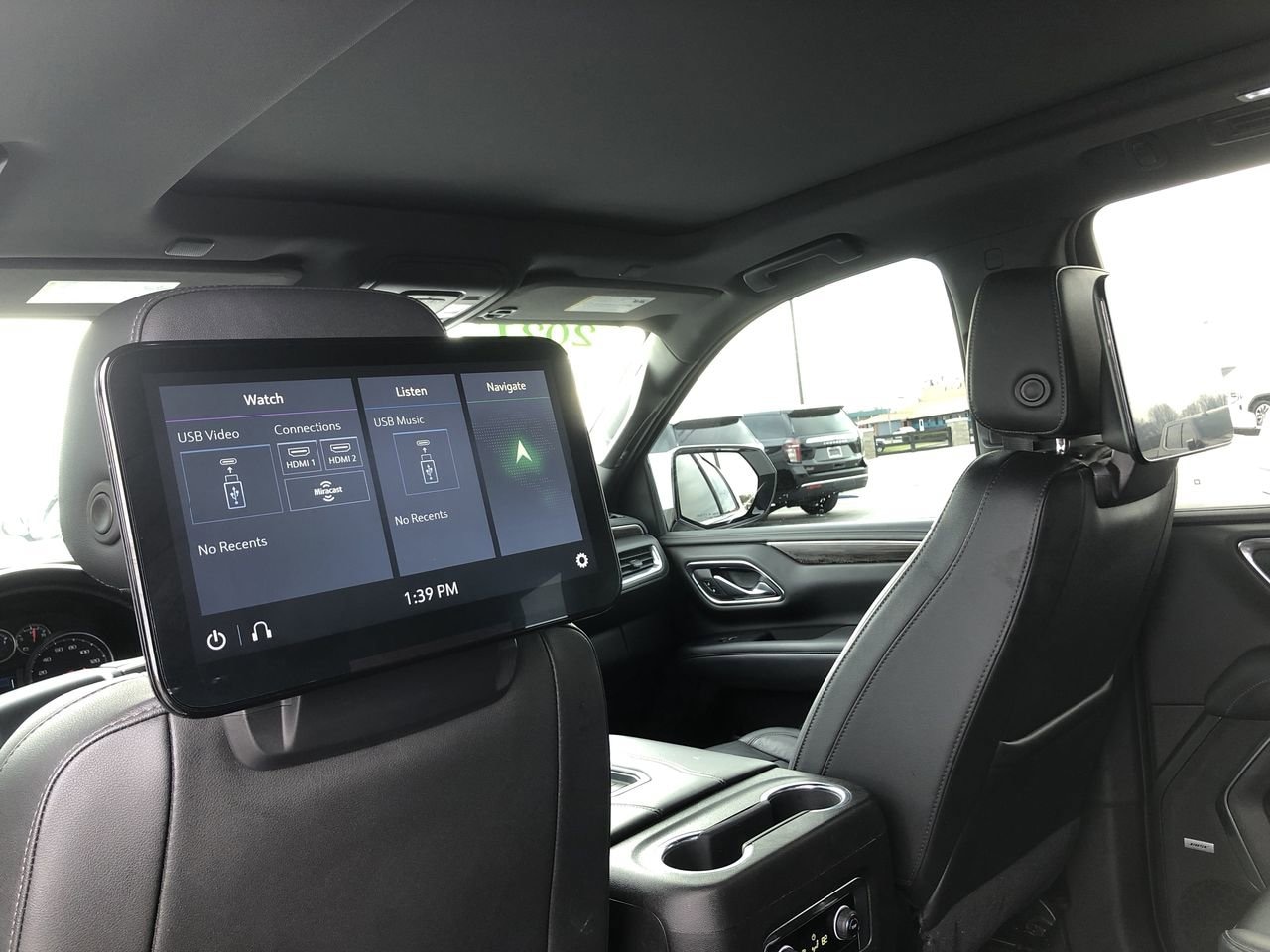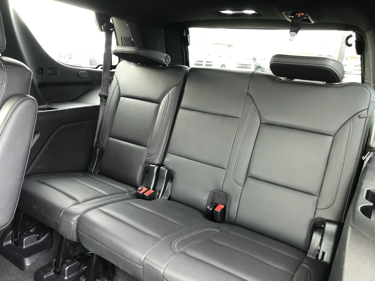 AUDIO SYSTEM CHEVROLET INFOTAINMENT 3 PREMIUM SYSTEM WITH CONNECTED NAVIGATION 10.2 DIAGONAL HD COLOR TOUCHSCREEN AM/FM stereo Bluetooth audio streaming for 2 active devices Apple CarPlay and Android Auto capable enhanced voice recognition additional memory for in-vehicle apps cloud connected personalization for select infotainment and vehicle settings. Subscription required for enhanced and connected services after trial period., JET BLACK LEATHER SEATING SURFACES 1ST AND 2ND ROW, SUMMIT WHITE, WHEELS 20 X 9 (50.8 CM X 22.9 CM) PAINTED ALUMINUM WITH MACHINE FACE AND ARGENT METALLIC POCKETS, REAR SEAT MEDIA SYSTEM includes dual rear seat-mounted 12.6 diagonal color-touch LCD HD screens Wi-Fi wireless projection capability two 2-channel wireless infrared digital headphones with 2 HDMI ports on the back of the center console; compatible with Bluetooth headphones, REAR AXLE 3.23 RATIO, REAR MEDIA AND NAV PACKAGE includes (UW9) Rear Seat Media System and (IOT) Chevrolet Infotainment 3 Premium system with connected Navigation 10.2 diagonal HD color touchscreen, SEATS SECOND ROW BUCKET MANUAL, LT PREFERRED EQUIPMENT GROUP includes standard equipment, SUNROOF POWER PANORAMIC DUAL-PANE TILT-SLIDING with express-open and close and power sunshade, TRANSMISSION 10-SPEED AUTOMATIC electronically controlled with overdrive includes Traction Select System including tow/haul (Most vehicles built on or after 6-7-2021 with a V8 engine will have (NSS) Not Equipped with Automatic Stop/Start which removes Automatic Stop/Start Engine control stop/start disable button and its content.) (STD), NOT EQUIPPED WITH AUTOMATIC STOP/START SEE DEALER FOR DETAILS (Most vehicles built on or after 6-7-2021 with a V8 engine will have (NSS) Not Equipped with Automatic Stop/Start which removes Automatic Stop/Start Engine control stop/start disable button and its content.), GVWR 7500 LBS. (3402 KG) (STD), SEATS FRONT BUCKET (STD), TIRES 275/60R20SL ALL-SEASON BLACKWALL, ENGINE 5.3L ECOTEC3 V8 with Dynamic Fuel Management Direct Injection and Variable Valve Timing includes aluminum block construction (355 hp [265 kW] @ 5600 rpm 383 lb-ft of torque [518 Nm] @ 4100 rpm) (STD), Locking/Limited Slip Differential, Four Wheel Drive, Tow Hitch, Power Steering, ABS, 4-Wheel Disc Brakes, Aluminum Wheels, Tires - Front All-Season, Tires - Rear All-Season, Conventional Spare Tire, Conventional Spare Tire, Luggage Rack, Running Boards/Side Steps, Automatic Highbeams, Heated Mirrors, Power Mirror(s), Privacy Glass, Intermittent Wipers, Variable Speed Intermittent Wipers, Rain Sensing Wipers, Intermittent Wipers, Remote Trunk Release, Power Liftgate, AM/FM Stereo, MP3 Capability, Bluetooth Connection, Auxiliary Audio Input, Smart Device Integration, Premium Sound System, MP3 Capability, Bluetooth Connection, Auxiliary Audio Input, Satellite Radio, Requires Subscription, HD Radio, Bluetooth Connection, Bluetooth Connection, Smart Device Integration, WiFi Hotspot, Bucket Seats, Immobilizer, Keyless Start, Leather Seats, Power Driver Seat, Power Passenger Seat, Driver Adjustable Lumbar, Passenger Adjustable Lumbar, Heated Front Seat(s), Pass-Through Rear Seat, Rear Bench Seat, 3rd Row Seat, Floor Mats, Adjustable Steering Wheel, Leather Steering Wheel, Cruise Control, Steering Wheel Audio Controls, Front Collision Warning, Power Door Locks, Keyless Entry, Power Door Locks, Remote Engine Start, Cruise Control, Universal Garage Door Opener, Security System, MP3 Capability, Auxiliary Audio Input, MP3 Capability, Auxiliary Audio Input, Power Windows, Power Windows, Power Windows, Seat Memory, Climate Control, Multi-Zone A/C, A/C, Rear A/C, A/C, Rear A/C, Rear Defrost, Auto-Dimming Rearview Mirror, Driver Vanity Mirror, Passenger Vanity Mirror, Driver Illuminated Vanity Mirror, Passenger Illuminated Visor Mirror, Front Collision Mitigation, Front Collision Warning, Traction Control, Stability Control, Brake Assist, Daytime Running Lights, Driver Restriction Features, Driver Air Bag, Passenger Air Bag, Front Side Air Bag, Front Head Air Bag, Rear Head Air Bag, Passenger Air Bag Sensor, Telematics, Requires Subscription, Rear Parking Aid, Back-Up Camera, Front Collision Mitigation, Front Collision Warning, Child Safety Locks, Tire Pressure Monitor