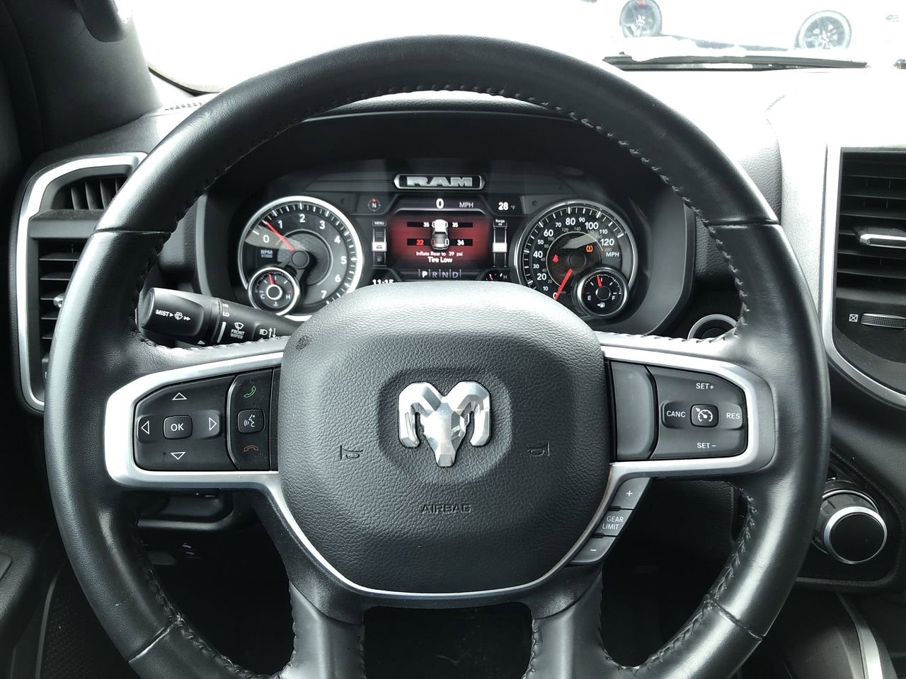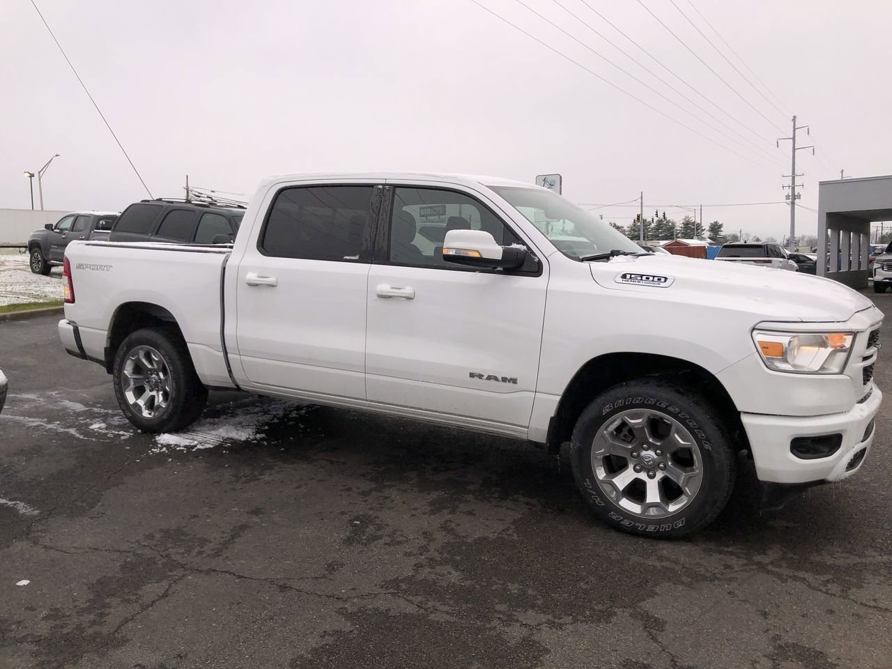 BRIGHT WHITE CLEARCOAT, BIG HORN LEVEL 1 EQUIPMENT GROUP -inc: Google Android Auto SiriusXM Radio Service Bluetooth Handsfree Phone & Audio USB Host Flip Rear Window Defroster For Details Visit DriveUconnect.com Integrated Center Stack Radio Rear View Auto Dim Mirror Power Adjustable Pedals Rear Power Sliding Window Rear Dome w/On/Off Switch Lamp Connectivity - US/Canada Glove Box Lamp 4G LTE Wi-Fi Hot Spot Exterior Mirrors w/Heating Element Power 8-Way Driver Seat Auto Dim Exterior Driver Mirror Radio: Uconnect 5 W w/8.4 Display 8.4 Touchscreen Display Class IV Receiver Hitch Black Premium Power Mirrors Apple CarPlay Big Horn IP Badge SiriusXM Satellite Radio Exterior Mirrors w/Supplemental Signals Exterior Mirrors Courtesy Lamps Universal Garage Door Opener Cluster 3.5 TFT Color Display Power-Folding Mirrors 2nd Row In Floor Storage Bins Sun Visors w/Illuminated Vanity Mirrors Power 2-Way Driver Lumbar Adjust, MONOTONE PAINT, REAR UNDERSEAT COMPARTMENT STORAGE, PICK-UP BOX LIGHTING, QUICK ORDER PACKAGE 27Z BIG HORN -inc: Engine: 5.7L V8 HEMI MDS VVT eTorque Transmission: 8-Speed Automatic (8HP75) Big Horn Badge, CLUSTER 7.0 TFT COLOR DISPLAY, WHEELS: 20 X 9 ALUMINUM CHROME CLAD (WRK), GVWR: 7 100 LBS, RADIO: UCONNECT 5 NAV W/8.4 DISPLAY -inc: Google Android Auto SiriusXM Radio Service USB Host Flip Disassociated Touchscreen Display HD Radio For Details Visit DriveUconnect.com Integrated Center Stack Radio Connectivity - US/Canada Air Conditioning ATC w/Dual Zone Control GPS Navigation 4G LTE Wi-Fi Hot Spot SiriusXM w/360L All Radio Equipped Vehicles Connected Travel & Traffic Services All R1 High Radios 8.4 Touchscreen Display Apple CarPlay, BED UTILITY GROUP -inc: MOPAR Spray In Bedliner MOPAR 4 Adjustable Cargo Tie-Down Hooks Pick-Up Box Lighting MOPAR Deployable Bed Step, BLACK DELUXE CLOTH BUCKET SEATS -inc: Power 8-Way Driver Seat Bucket Seats Manual Adjust 4-Way Front Passenger Seat Full Length Floor Console Rear Center Armrest Delete LED Lamp - Floor Console Bin Power 2-Way Driver Lumbar Adjust, TRANSMISSION: 8-SPEED AUTOMATIC (8HP75), TIRES: 275/55R20 OWL ALL SEASON, REMOTE START SYSTEM, TRAILER BRAKE CONTROL, 3.21 REAR AXLE RATIO (STD), ENGINE: 5.7L V8 HEMI MDS VVT ETORQUE -inc: Active Noise Control System Heavy Duty Engine Cooling Passive Tuned Mass Damper GPEC 5 Engine Controller GVWR: 7 100 lbs Dual Rear Exhaust w/Bright Tips HEMI Badge 23 Gallon Fuel Tank 18 Aluminum Spare Wheel, SPORT APPEARANCE PACKAGE -inc: Exterior Mirrors w/Supplemental Signals Body Color Premium Power Mirrors Sport Decal Exterior Mirrors Courtesy Lamps Exterior Mirrors w/Heating Element Auto Dim Exterior Driver Mirror Body Color Exterior Mirrors Black Interior Accents Power-Folding Mirrors Body Color Front Bumper Body Color Rear Bumper w/Step Pads Bridgestone Brand Tires All Plant-Installed Decals, Four Wheel Drive, Tow Hitch, Power Steering, ABS, 4-Wheel Disc Brakes, Brake Assist, Lithium Ion Traction Battery, Conventional Spare Tire, Heated Mirrors, Power Mirror(s), Privacy Glass, Intermittent Wipers, Variable Speed Intermittent Wipers, Power Door Locks, Daytime Running Lights, Automatic Headlights, Fog Lamps, AM/FM Stereo, Bluetooth Connection, MP3 Capability, Steering Wheel Audio Controls, Auxiliary Audio Input, Adjustable Steering Wheel, Trip Computer, Power Windows, Pass-Through Rear Seat, Rear Bench Seat, Leather Steering Wheel, Keyless Start, Keyless Entry, Power Door Locks, Cruise Control, A/C, Cloth Seats, Passenger Vanity Mirror, Passenger Illuminated Visor Mirror, Floor Mats, Bluetooth Connection, Power Windows, Power Door Locks, Trip Computer, Immobilizer, Traction Control, Stability Control, Traction Control, Front Side Air Bag, Telematics, Requires Subscription, Tire Pressure Monitor, Driver Air Bag, Passenger Air Bag, Front Head Air Bag, Rear Head Air Bag, Passenger Air Bag Sensor, Child Safety Locks, Back-Up Camera